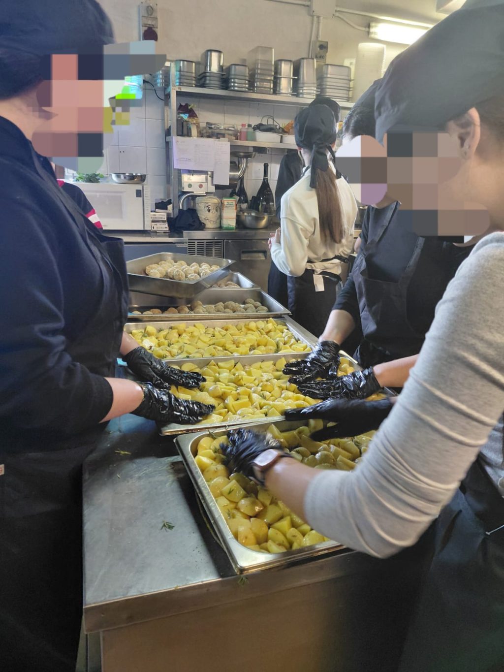 Con il passare delle settimane, il corso è entrato sempre più nel vivo. I pomeriggi successivi sono stati dedicati alla preparazione dei primi piatti: dalla pasta fatta in casa con acqua e farina agli gnocchi, accompagnati da diversi condimenti e verdure. I ragazzi hanno svolto tutte le fasi necessarie, dalla pulizia degli ingredienti alla preparazione vera e propria, sperimentando l’organizzazione del lavoro e la collaborazione all’interno del gruppo.