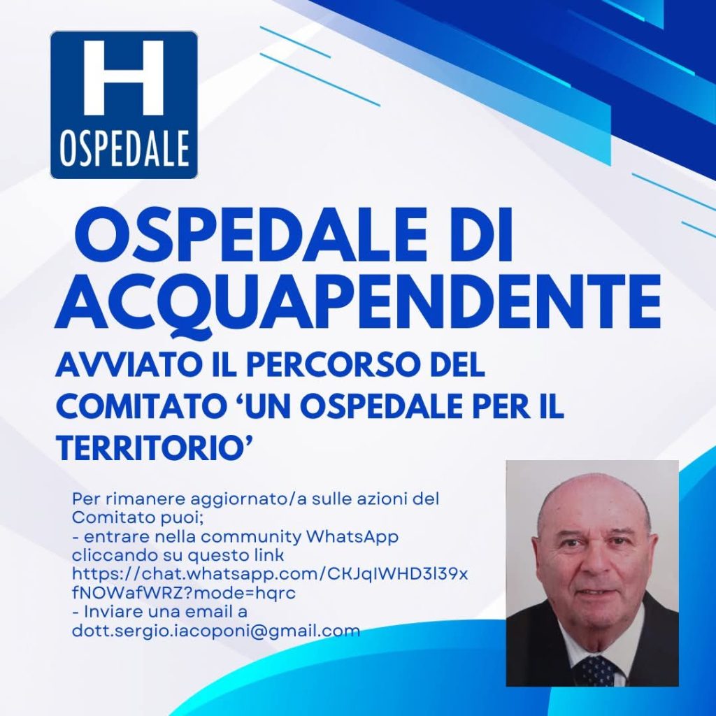 Il dottor Sergio Iacoponi, presidente del Comitato “Un Ospedale per il Territorio” di Acquapendente, invia una nota informativa alle popolazioni dell’Alta Tuscia viterbese per aggiornare sull’attività svolta nei primi mesi dalla costituzione ufficiale del gruppo.