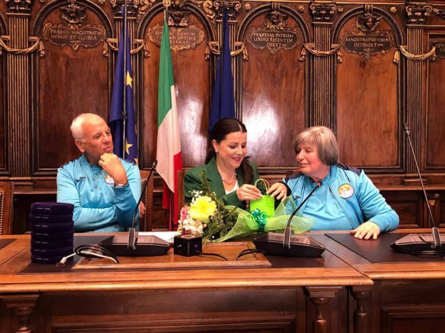 La sindaca Frontini ha poi rivolto un ringraziamento ai familiari dei giovani atleti, alcuni presenti alla cerimonia, e all’associazione Sorrisi che Nuotano Eta Beta ODV che in quasi trenta anni di attività ha avvicinato 500 giovani speciali a numerose attività sportive. Insieme ai ragazzi, la presidente dell’associazione Sorrisi che Nuotano Eta Beta ODV Anna Lupino con Maurizio Casciani, riferimento da sempre dell’importante realtà associativa.