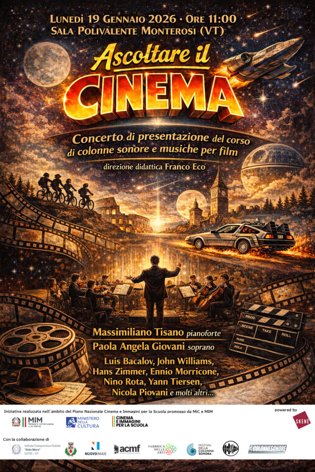 Il progetto, diretto scientificamente dal compositore Franco Eco e sostenuto dai Ministeri della Cultura e dell’Istruzione e del Merito, nell’ambito del Piano nazionale cinema e immagini per la scuola, sarà presentato lunedì 19 gennaio, alle ore 11, presso la sala polivalente di Monterosi (VT).