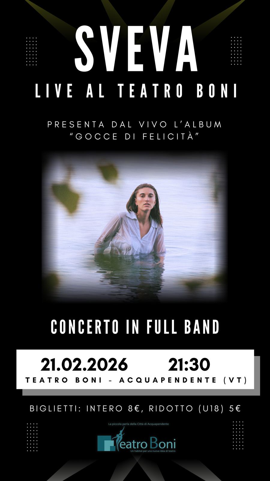 Ad otto giorni dall’inizio di Festival di Sanremo, il Presidente dell’Associazione Teatro Boni, Tolmino Piazzai, ufficializza l’arrivo presso la location di Piazza della Costituente della giovane interprete Sveva.