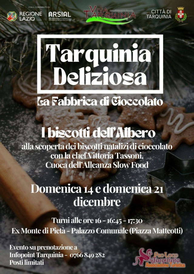 Il programma si arricchisce con i laboratori “I biscotti dell’Albero”, dedicati alla scoperta dei biscotti natalizi di cioccolato guidati dalla chef Vittoria Tassoni, cuoca dell’Alleanza Slow Food. Gli appuntamenti sono fissati per domenica 14 e domenica 21 dicembre, sempre presso l’Ex Monte di Pietà, con turni pomeridiani alle ore 16:00, 16:45 e 17:30.