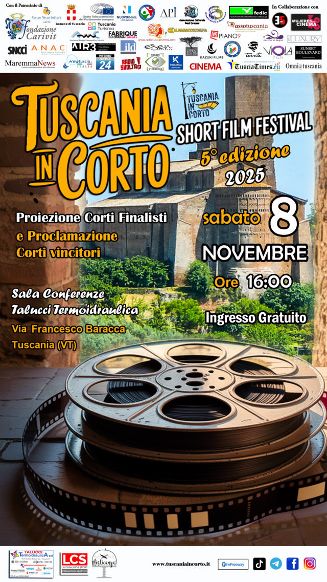 Il Tuscania in Corto Short Film Festival vi aspetta l’8 novembre per la serata di proiezione dei corti finalisti e premiazione, una celebrazione del cinema e del talento.