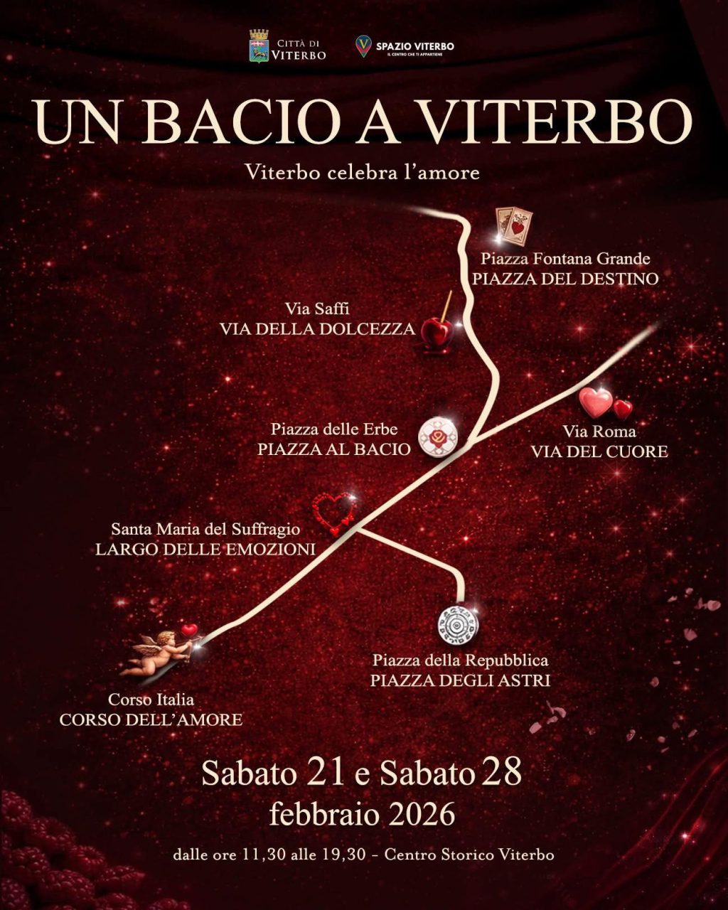 Viterbo celebra l’amore e lo fa nel cuore della città, trasformando il centro storico in un percorso emozionale tutto da vivere. “Un bacio a Viterbo” è l’iniziativa che invita cittadini e visitatori a riscoprire piazze, scorci e luoghi simbolici attraverso un racconto fatto di gesti condivisi, incontri ed emozioni.
