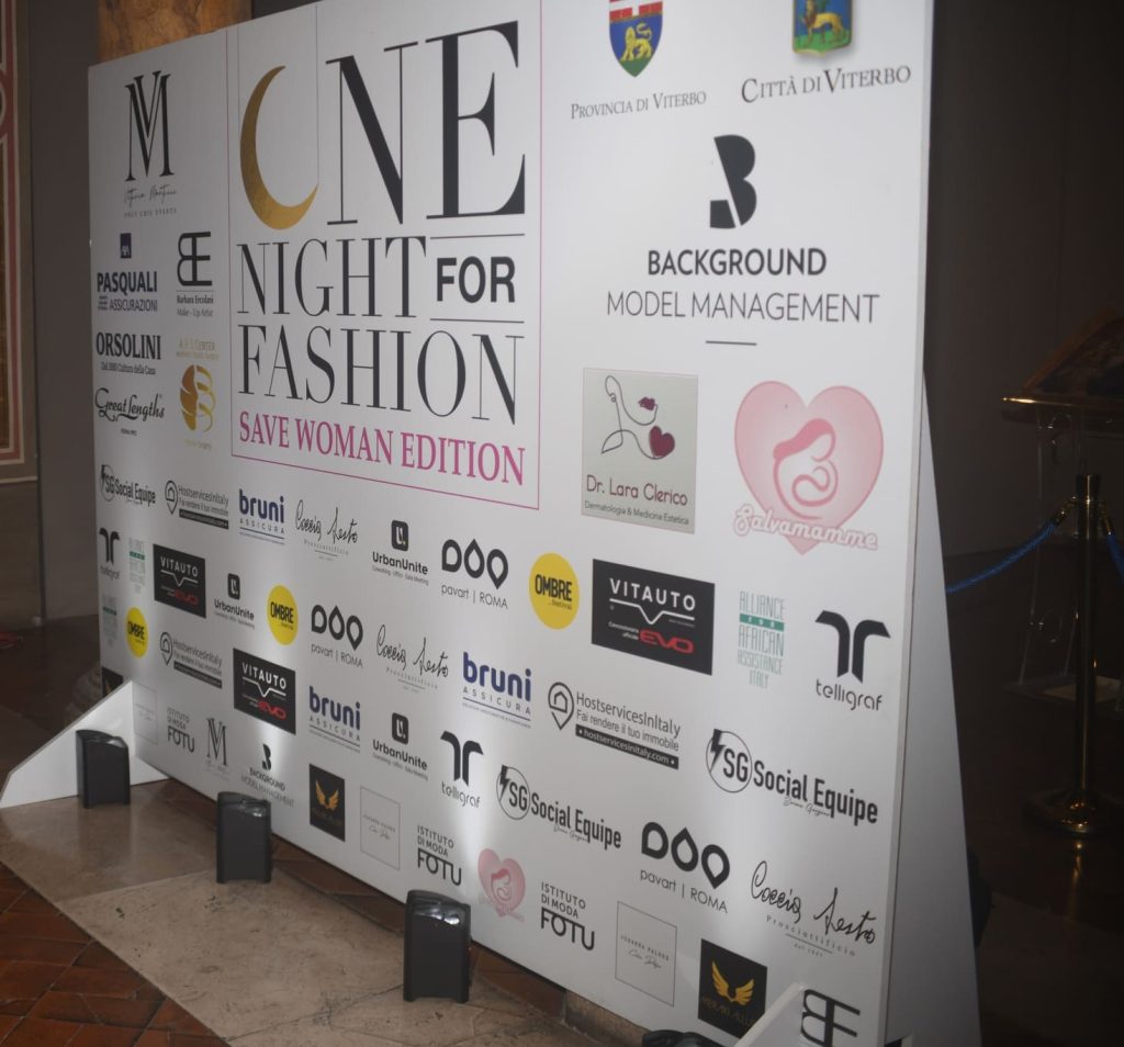 I ringraziamenti vanno a chi ha reso possibile questa straordinaria serata: Background Model Management di Antonella Polini (organizzazione, moda e marketing), Luca Antonelli (organizzazione e ufficio stampa), Simonetta Coccia (marketing), Only Chic di Vittoria Mantrici (logistica), Barbara Ercolani e Silvana Pagliaccia (make-up) e l’Accademia di Trucco Professionale di Roma per aver contribuito a fare di “One Night for Fashion – Save Woman Edition” un evento che, con forza e passione, ha dato voce a tutte le donne che combattono ogni giorno per la propria libertà.
