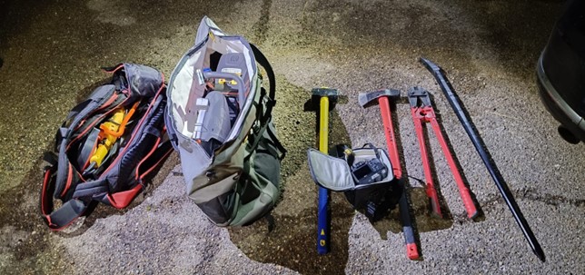 Durante la successiva perquisizione, all’interno della vettura i militari hanno rinvenuto numerosi arnesi da scasso e una macchina fotografica, tutto sottoposto a sequestro, così come il veicolo stesso.