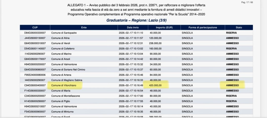 Il primo asilo nido comunale rappresenterà una svolta storica per Vitorchiano. Grazie ad un investimento PNRR dedicato, sarà possibile offrire finalmente un servizio pubblico essenziale per supportare concretamente le giovani famiglie e il lavoro dei genitori. Secondo il cronoprogramma del cantiere, le cui fasi sono dettate dalla legge, nell’estate 2026 si concluderanno, nei termini aggiornati indicati dal Ministero, i lavori della struttura architettonica e delle aree esterne e contestualmente si svolgerà la gara per la fornitura e posa dei nuovi arredi.