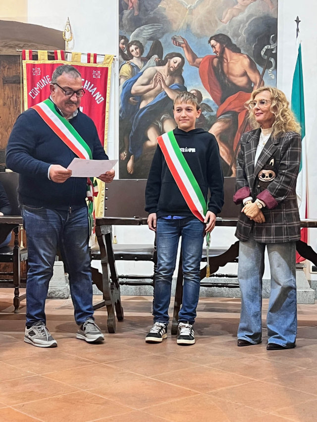 È stato eletto a Vitorchiano il sindaco del Consiglio comunale delle ragazze e dei ragazzi (CCRR): Mattia Marani. Il nuovo piccolo “primo cittadino”, insieme ai vicesindaci Filippo Ferri e Gloria Viventi e ai consiglieri Mattia Quagliozzi, Chiara Cristiani, Giulia Cartella, Caterina Baliva, Angelica Silvestri, Giorgio Peluso, Dario Goletti, Nicole Viola, Emma Salcini, Rebecca Gianni e Valentina Mancinelli, si sono insediati per la prima volta tra i banchi della sala consiliare del Comune e hanno ufficialmente dato il via al loro percorso.