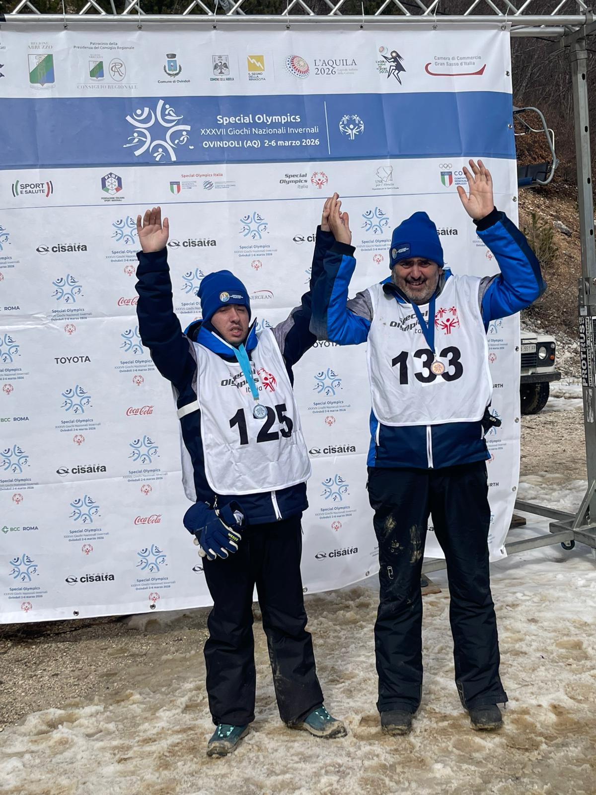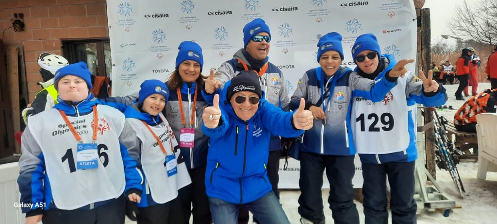 L’ASD Sorrisi che Nuotano Eta Beta ODV presentava ai Giochi sette atleti: nello sci alpino la squadra era composta dalla nostra campionessa mondiale Viviana COZZANI, alla prima uscita ufficiale dopo lo straordinario successo dei Giochi Mondiali Invernali Special Olympics di Torino 2025, dagli espertissimi Roberto RICCI, Filippo MONTEMURRI, dalla quasi debuttante Martina CASAGRANDE, e dal piccolo Giorgio NERI, alla sua prima partecipazione ai Giochi e da subito eletto mascotte e “Capitano junior” della squadra. Nella corsa con le racchette da neve, all’esperto Corrado RICCI, si affiancava il debuttante Francesco CARVONE, alla sua prima esperienza a livello nazionale.